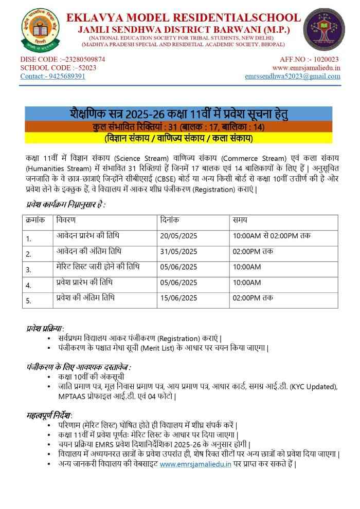ADMISSION NOTICE 2025-2026 FOR CLASS 11TH (SCIENCE, COMMERCE AND HUMANITIES STREAMS)