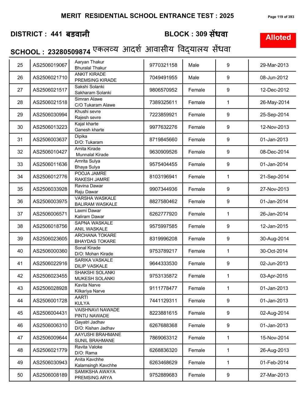 EMRS CLASS 6 ENTRANCE TEST RESULT 2025 LIST 2